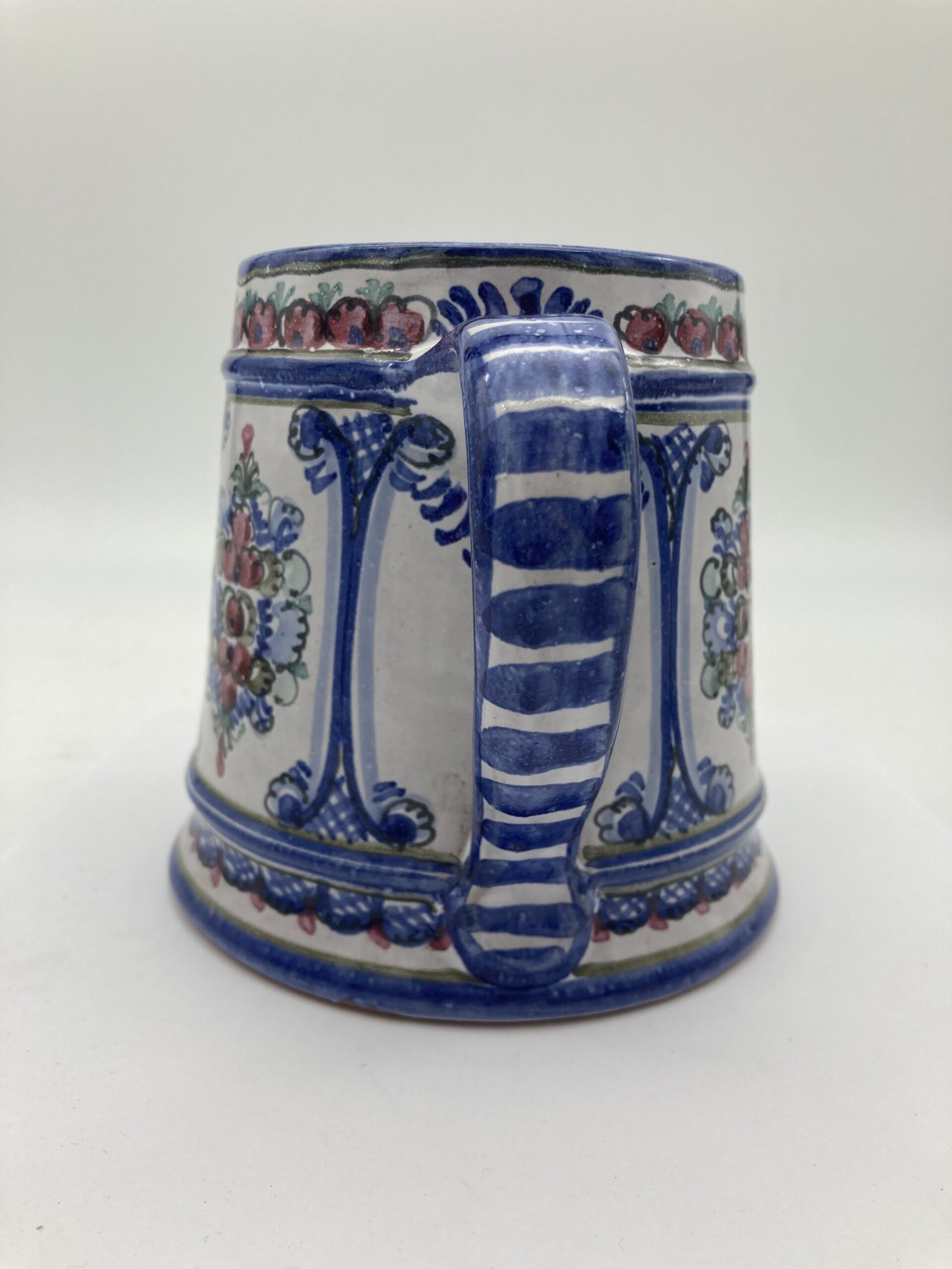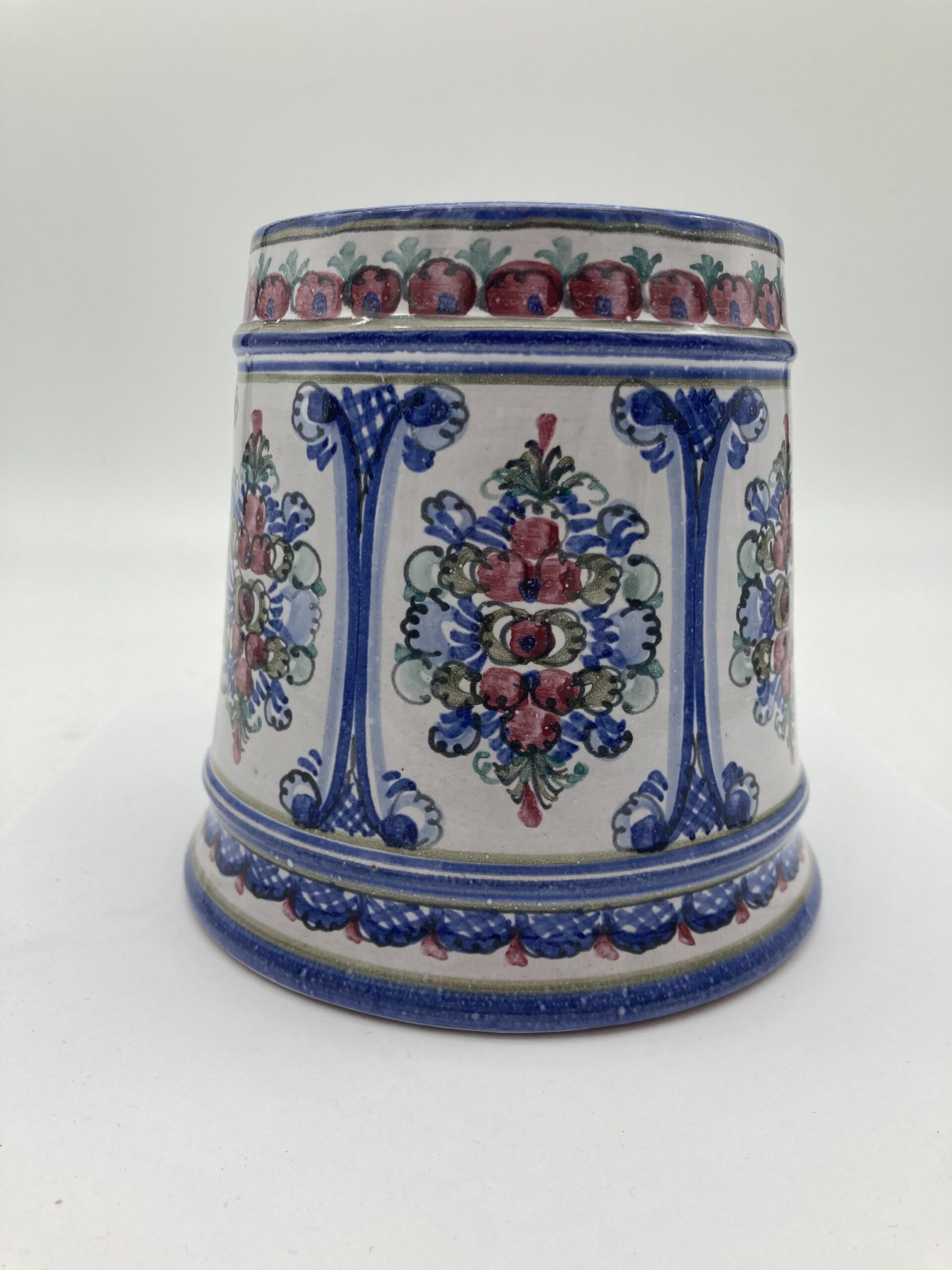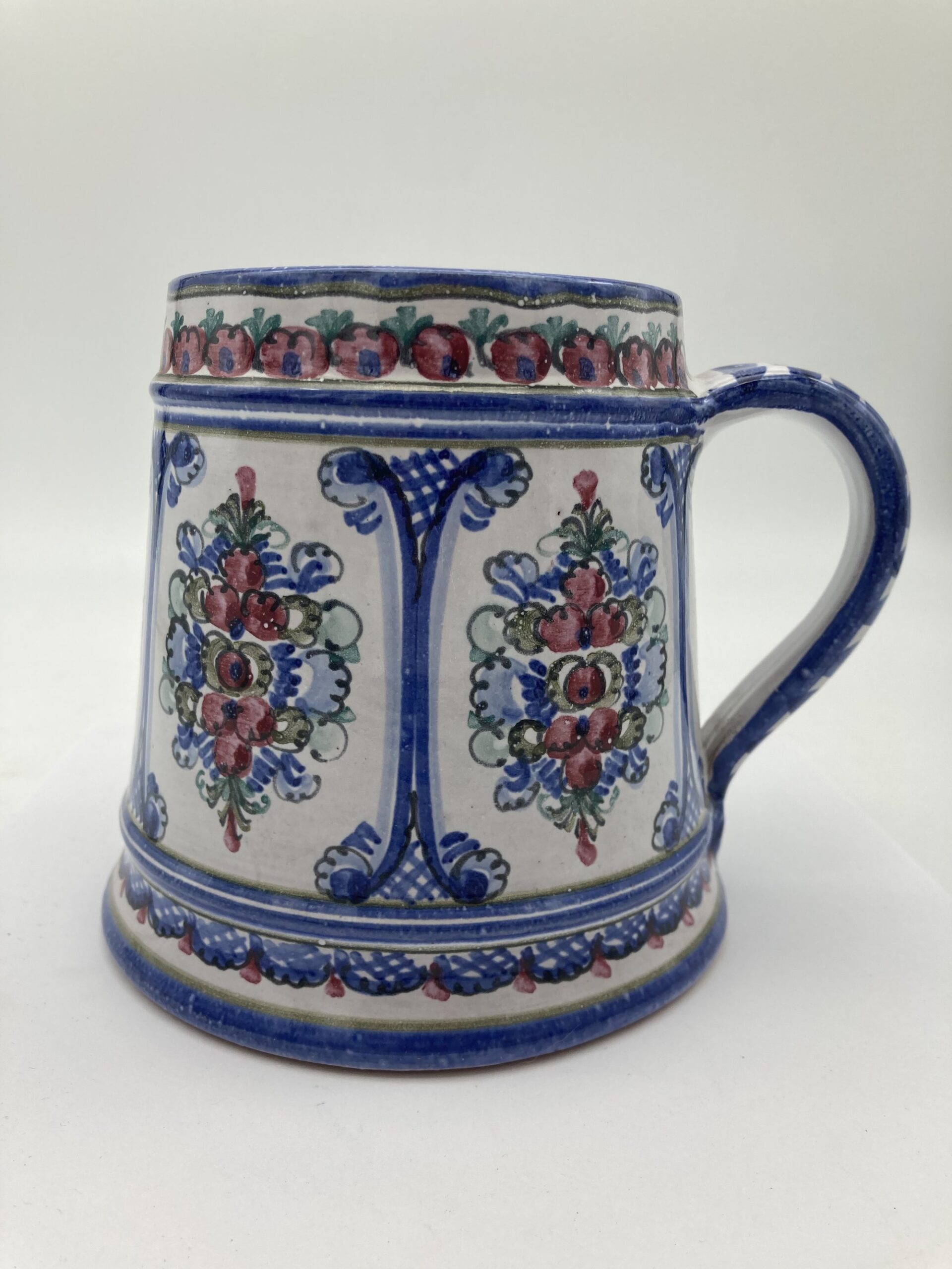 Ein charaktervoller Krug aus unserer kleinen Töpferei: liebevoll handbemalt mit floralen Ornamenten in Blau, Rot und Grün. Das traditionelle Dekor macht jeden Schluck zum Genuss und bringt bayerisches Flair auf den Tisch.