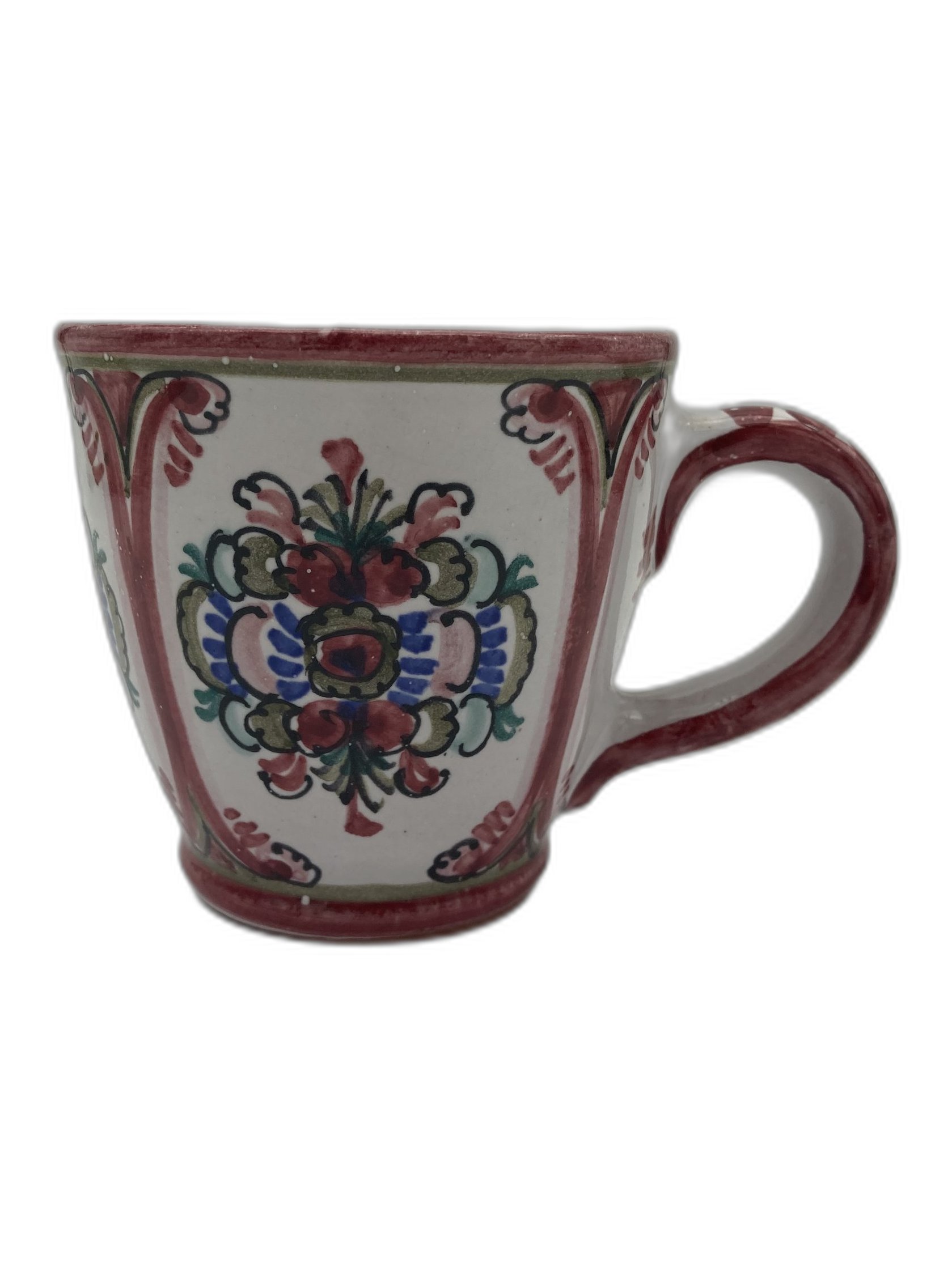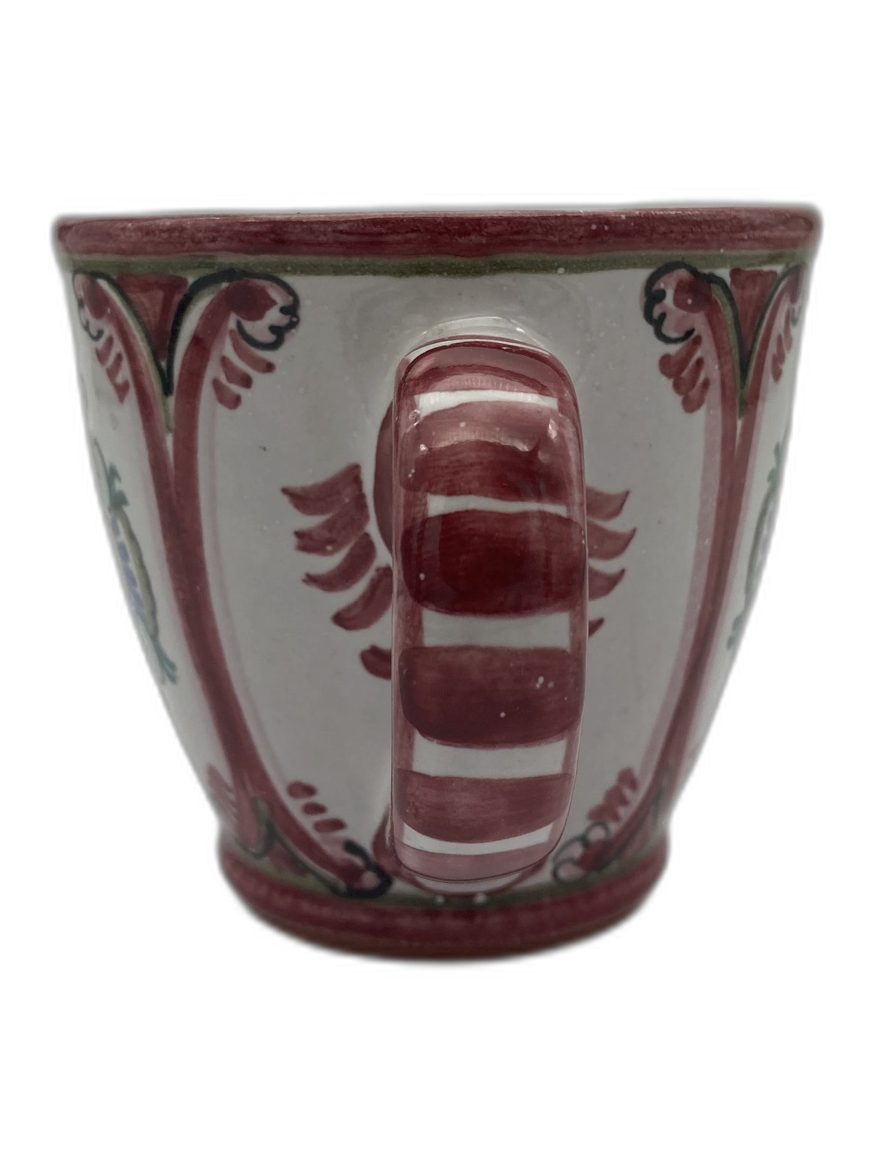 - Traditionelles florales Dekor mit rot gefasstem Rand und Henkel